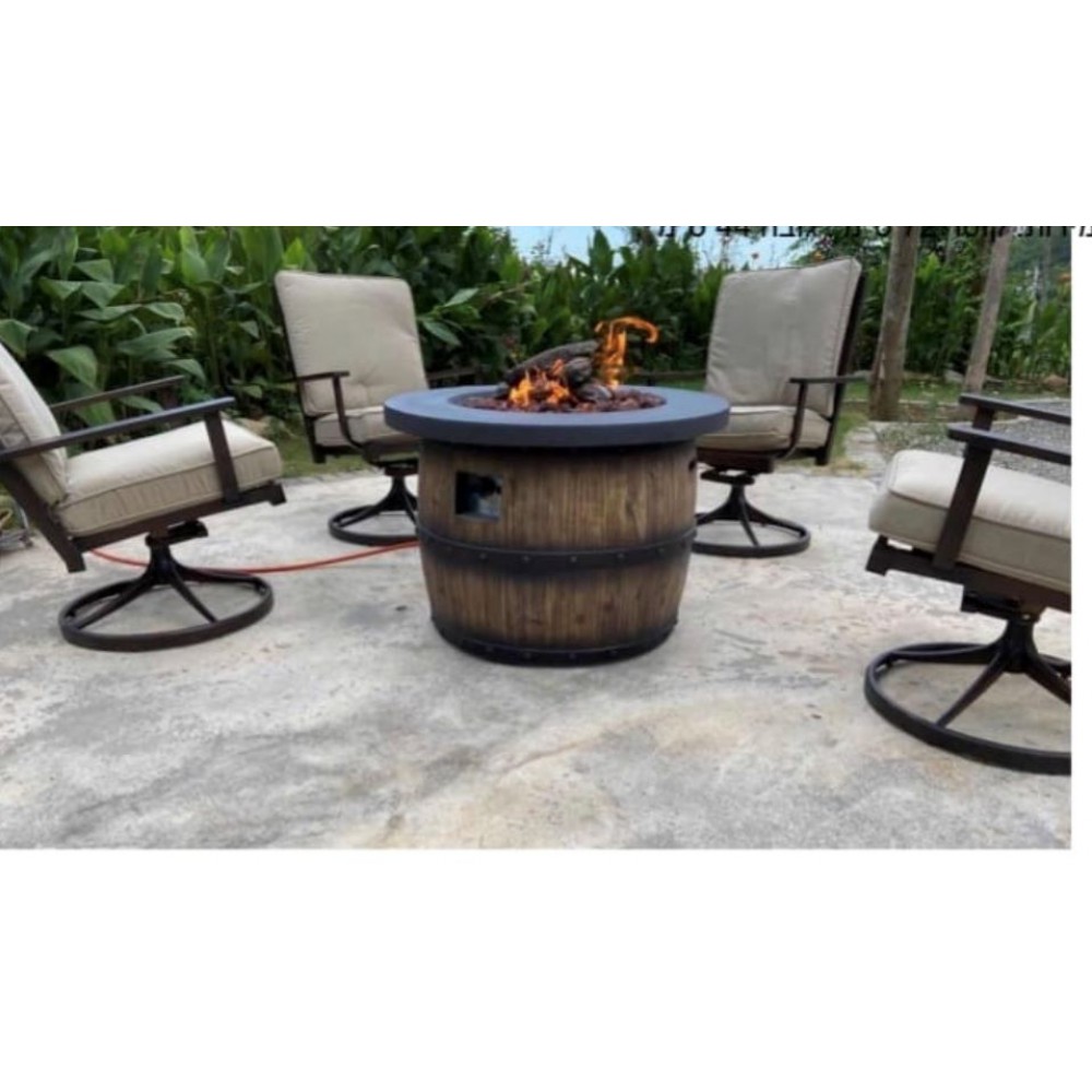 שולחן אש גז דמוי חבית עץ גדול