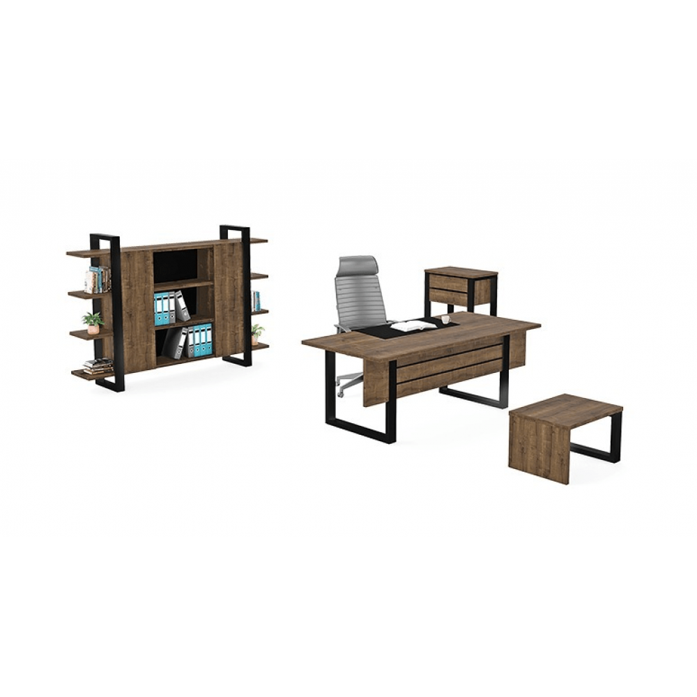 מערכת מנהלים יוקרתית הכוללת שולחן מנהל, שולחן קפה, כוננית מעוצבת ושלוחה