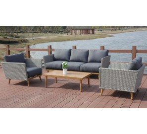 מערכת ישיבה דו מושבית ,עשויה ראטן סינטטי בסגנון חבלים מולבש על גבי שלדת אלומיניום אל חלד . מידות ספה תלת מושבית 180X48X84 ס"מ ,כורסאת יחיד 77X48 ס"מ ,גובה מירבי 84 ס"מ שולחן מלבני 120X70 ס"מ ..