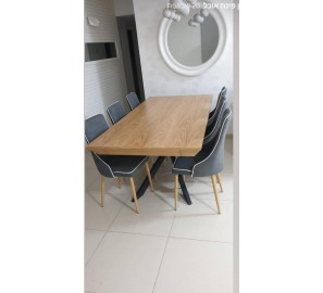 שולחן לפינת אוכל נפתח עם 6 כיסאות : מסילות גרמניות 7 שנים אחריות pitkerהכיסא מגיע בגוונים:לבן,שחור,צהוב,אדום,כחול,אפורניתן לקבל בגודל אורך מ170 עד 220 ורוחב מ90 עד 120השולחן מגיע עם 2 הגדול של 50 כל צד סה"כ עוד 100 ללא תוספת תשלוםחומרים של השולחן mdf+פורנירניתן להוסיף:*פורמייק..