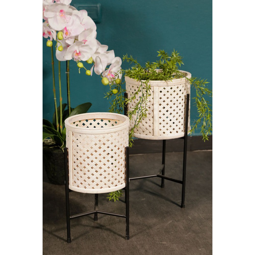זוג מעמדים לעציצים במבוק רגלי מתכת 77466