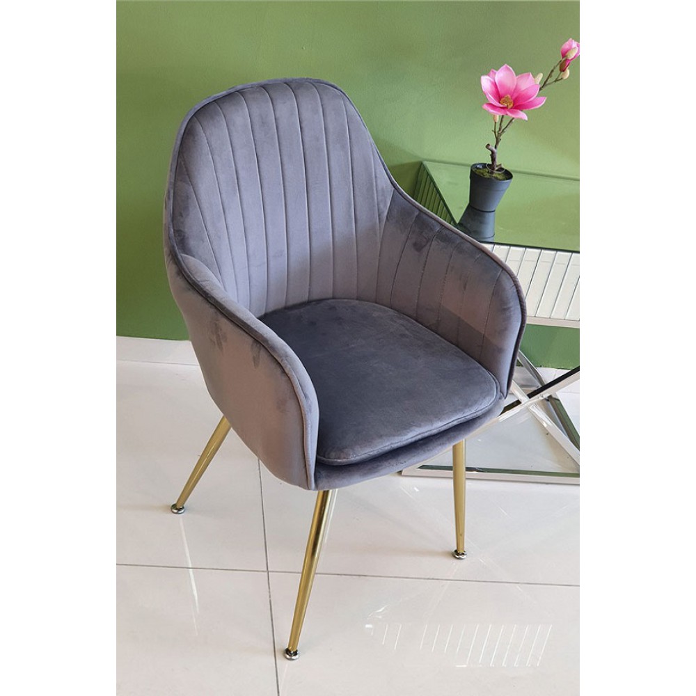 כורסא קטיפה אפור רגלי מתכת זהב דגם 8848