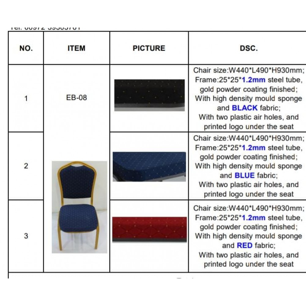 כסא אולמות אירועים שלד מתכת