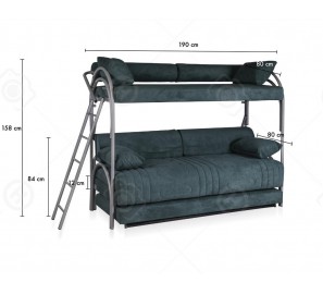 מיטת קומותיים איכותית ,יפה ופרקטית גוף המיטה עשוי מעץ סנדוויץ' חזק ועמידארגז מצעים עמוק עם פתיחה קלה בד נעים ורחיץ לניקוי קל מיטת חבר נוספת נפתחת בקלות מזרן עם ליבת ספוג סגול איכותי בעל דרגת קושי בינונית -קשיחה המתאימה במיוחד לילדים ובני נוער ,ולשמירת צורתו המקורית של המזרן למשך ..