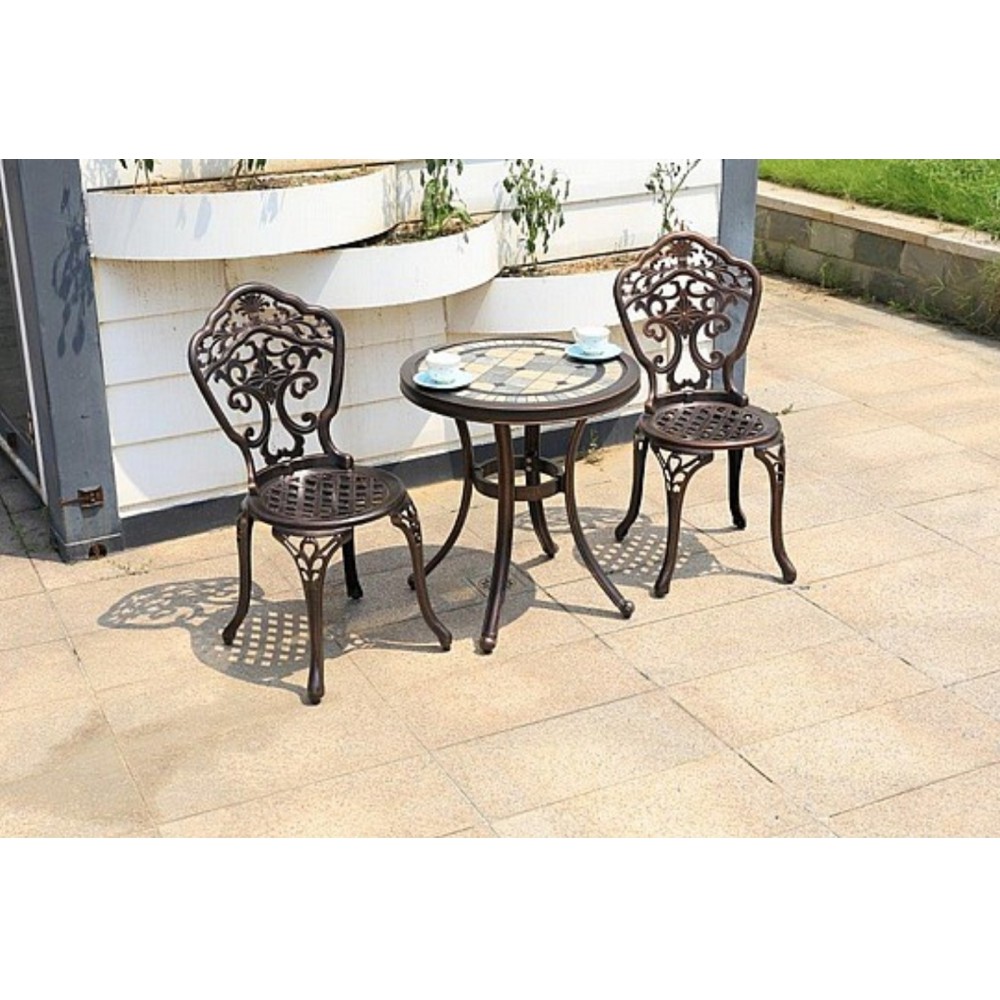 מערכת ישיבה זוגית מאלומיניום מוצק העמיד לתנאי החוץ ומשולבת בפסיפס דקורטיבי ויפיפיה: