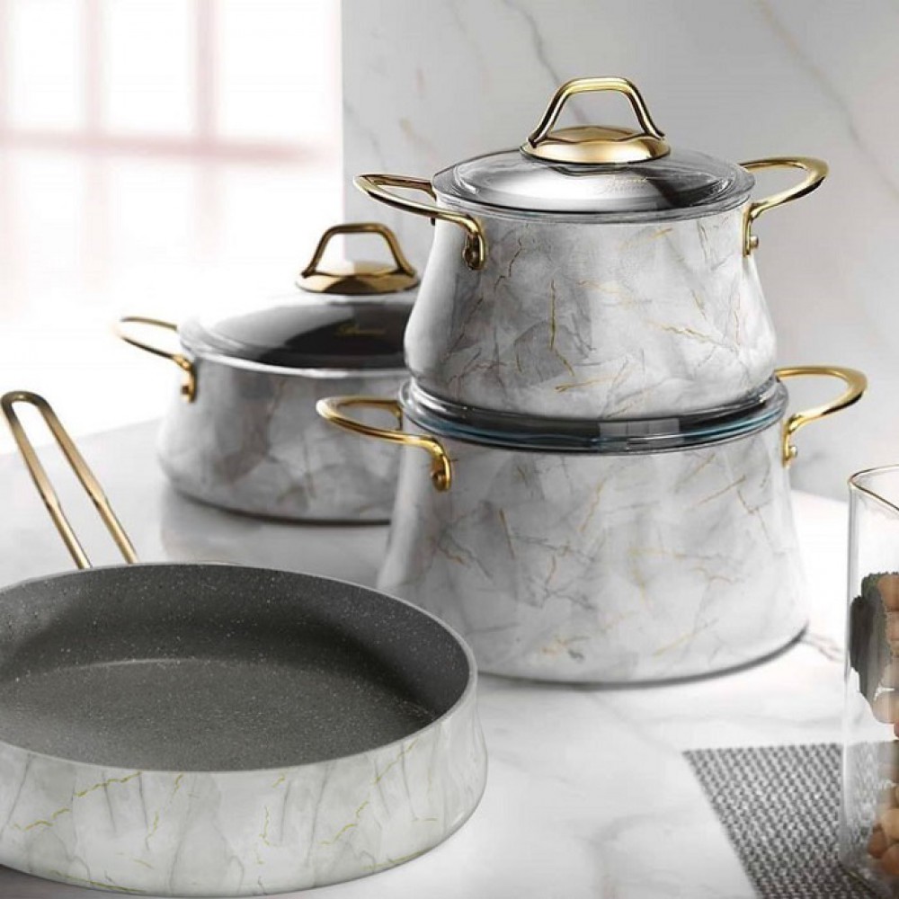 סט סירים 7 חלקים יציקת אלומיניום בציפוי שיש אפור דגם 7757