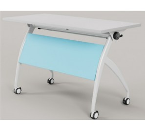 שולחן משרדי פרקטי הניתן לנייד בקלות בעל גלגלים שקטים בגודל 2.5 אינץ' עם בולם מנגנון קיפול עם ידית ידנית וקפיץ אוטומטי לחזרה למצב נעילה מראה יפה ומעוצב , ניתן לערום מספר שולחנות לחיסכון במקום ברזול צבוע בצבע אפוקסי בתנור לעמידות גבוהה לאורך שנים גימור פלטת השולחן -לבן בר..