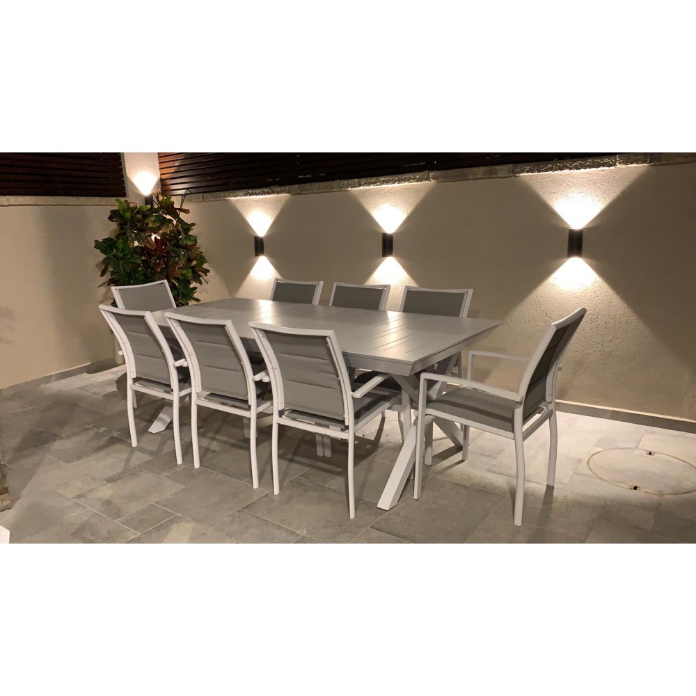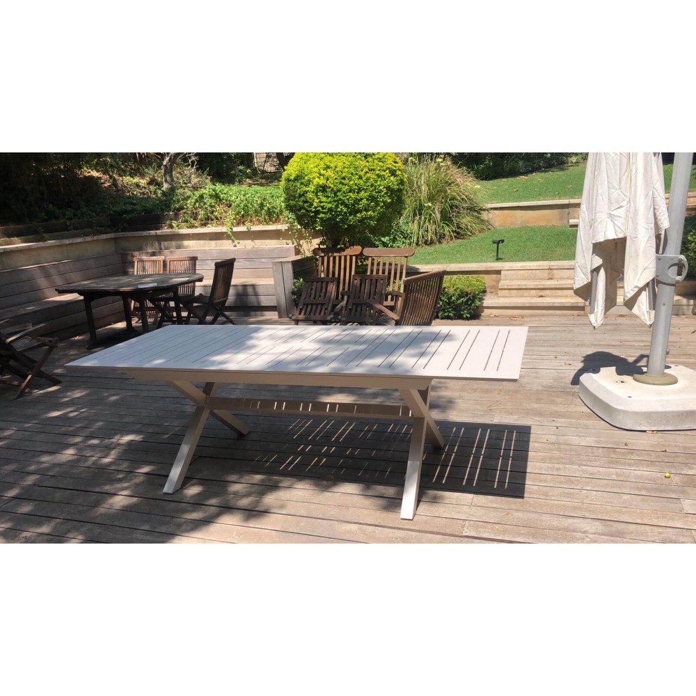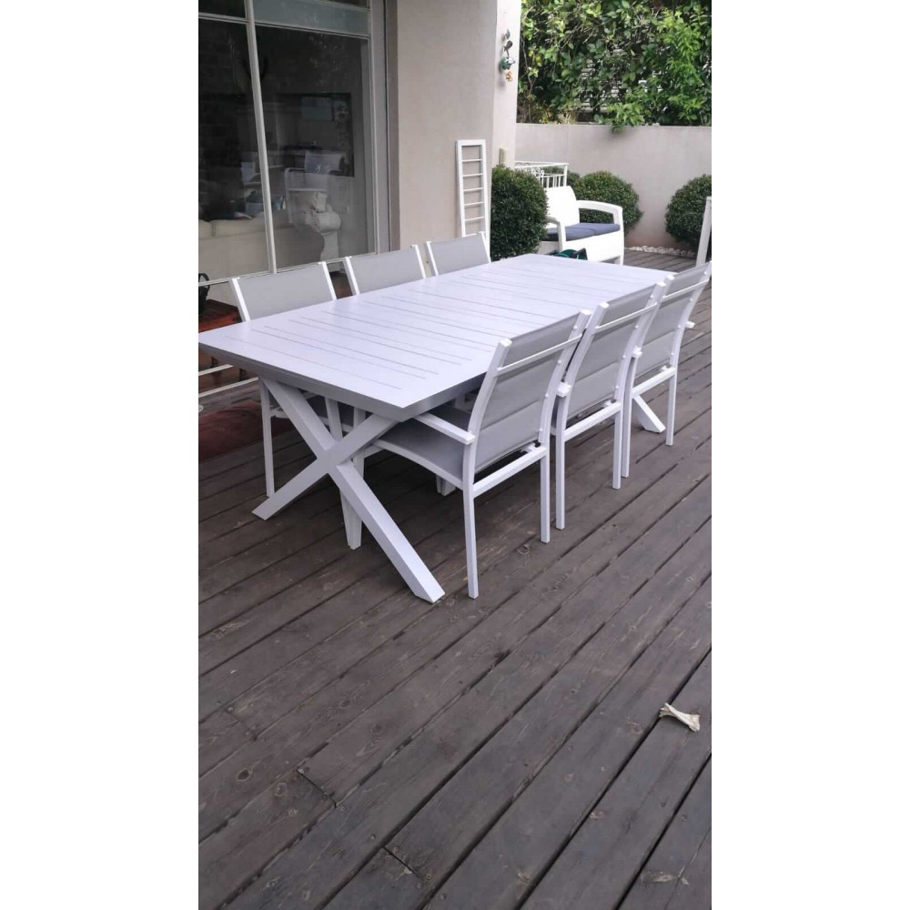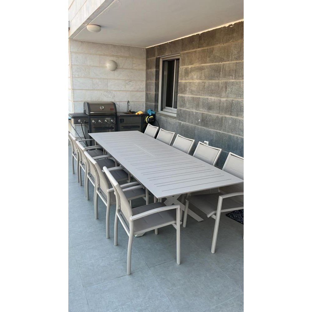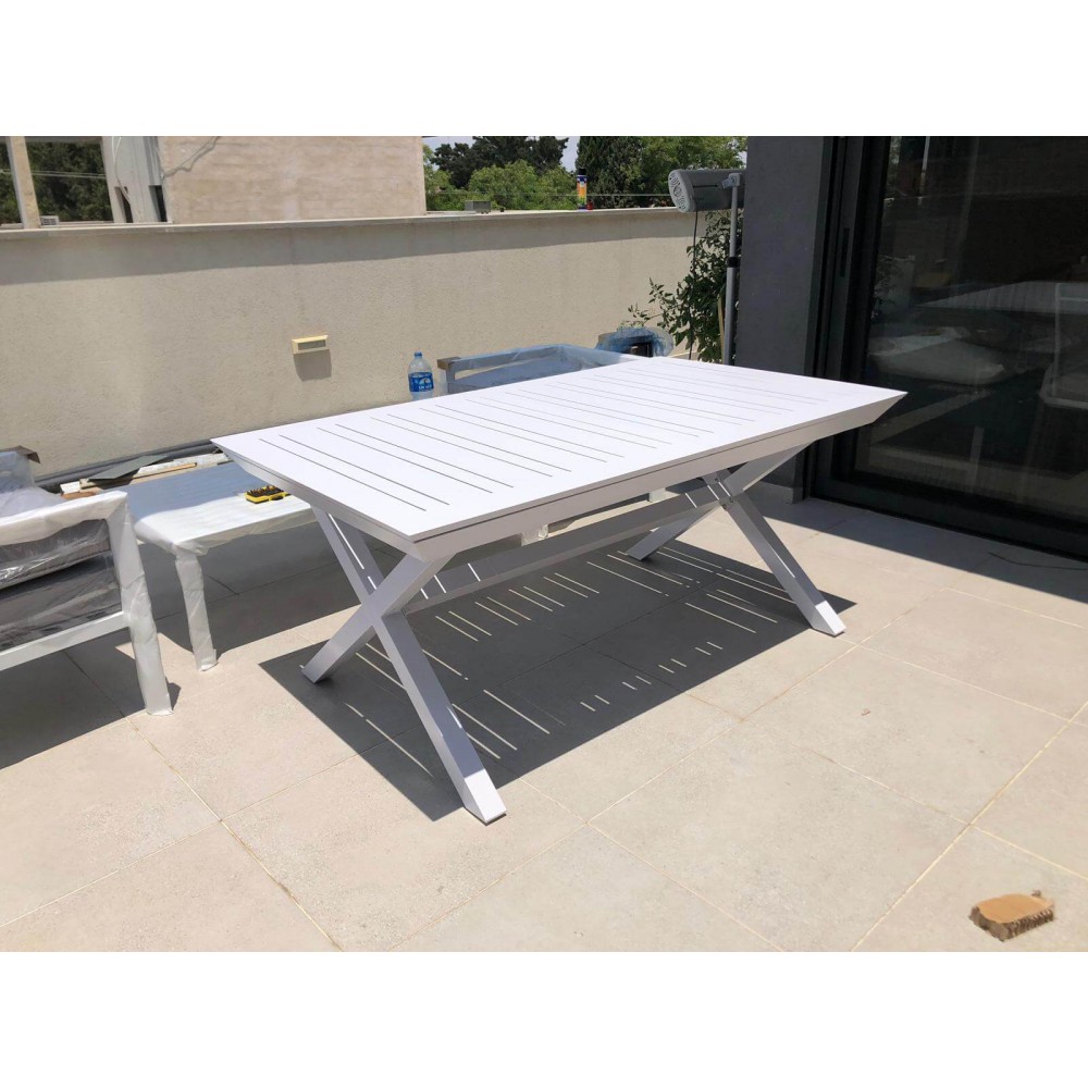 שולחן אלומניום לגינה בגודל 100*216 במצב סגור שנפתח ל-297 במצב פתוח במחיר מבצע של 3890 ש"ח