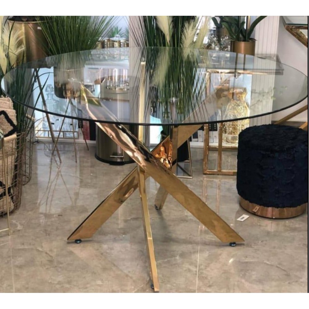 שולחן פינת אוכל זכוכית מורן קוטר 120