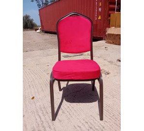 כסא אולמות אירועים מרופד צבע אדום ספוג רך מגיע עם שני חורי אוויר מפלסטיק שלד חום..