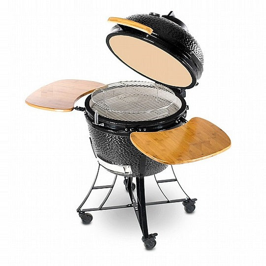 המעשנת כוללת מדפים מתקפלים מעץ המאפשרים סביבת עבודה נוחה במיוחד, רשת נירוסטה עבה ועמידה שאינה מחלידה, ומעמד נירוסטה נייד עם גלגלים לשינוע קל ונוח.