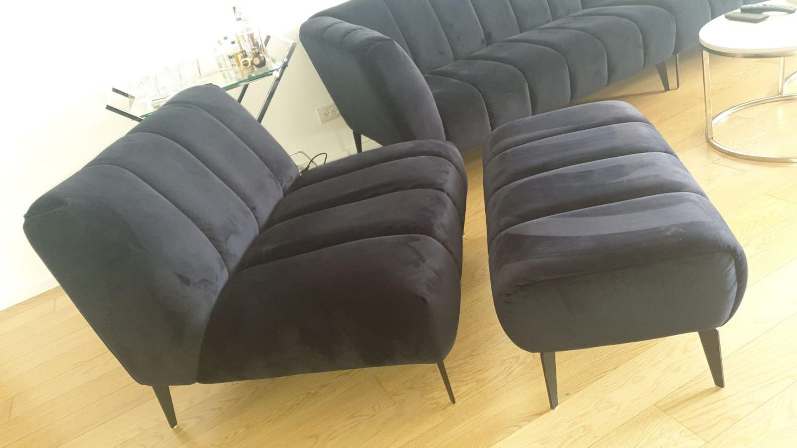 כורסא והדום מעוצבים דגם 89889, ניתן להזמין בכל צבע (שחור/חרדל/שמנת/כחול כהה)