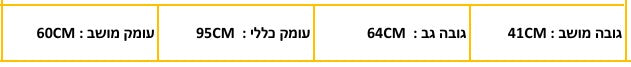 ניתן להזמין בגדלים נוספים במחירים הבאים :