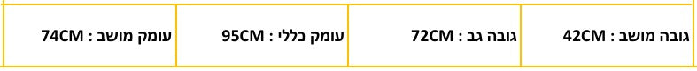 ניתן להזמין בגדלים נוספים במחירים הבאים :