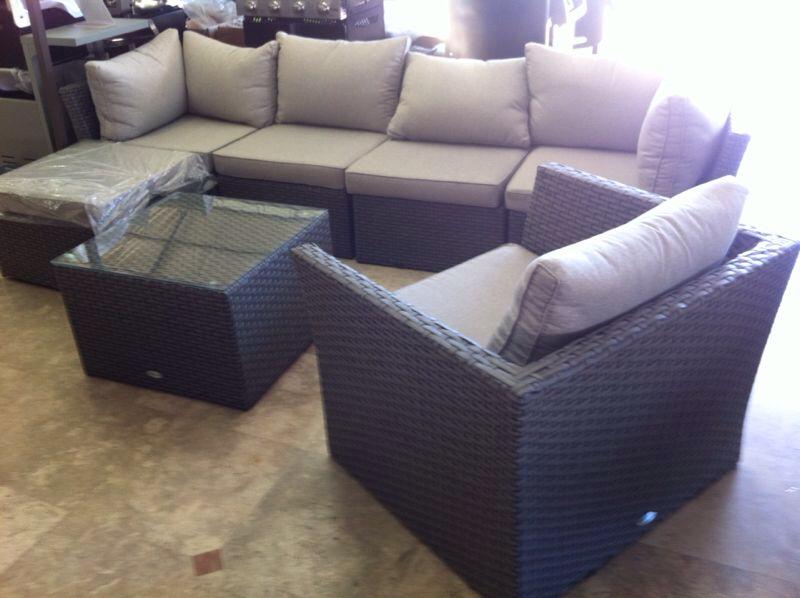 סלון עשוי מראטן סינטטי עם מבנה אלומיניום. הרכבו הבסיסי של הסלון בנוי מספה פינתית מודולארית - בעלת 6 חלקים הניתנים לבנייה לפי התאמה : 2 כורסאות פינתיות, 2 כורסאות אמצעיות, הדום עם כריות ושולחן בשילוב זכוכית מחוסמת כאשר ישנה אפשרות להוסיף לסט חלקים כגון כורסא יחיד, כורסאות פינתיות/אמצעיות ו/או שולחן. צבע הראטן הינו בגוון אפור בהיר עם כריות אפורות.