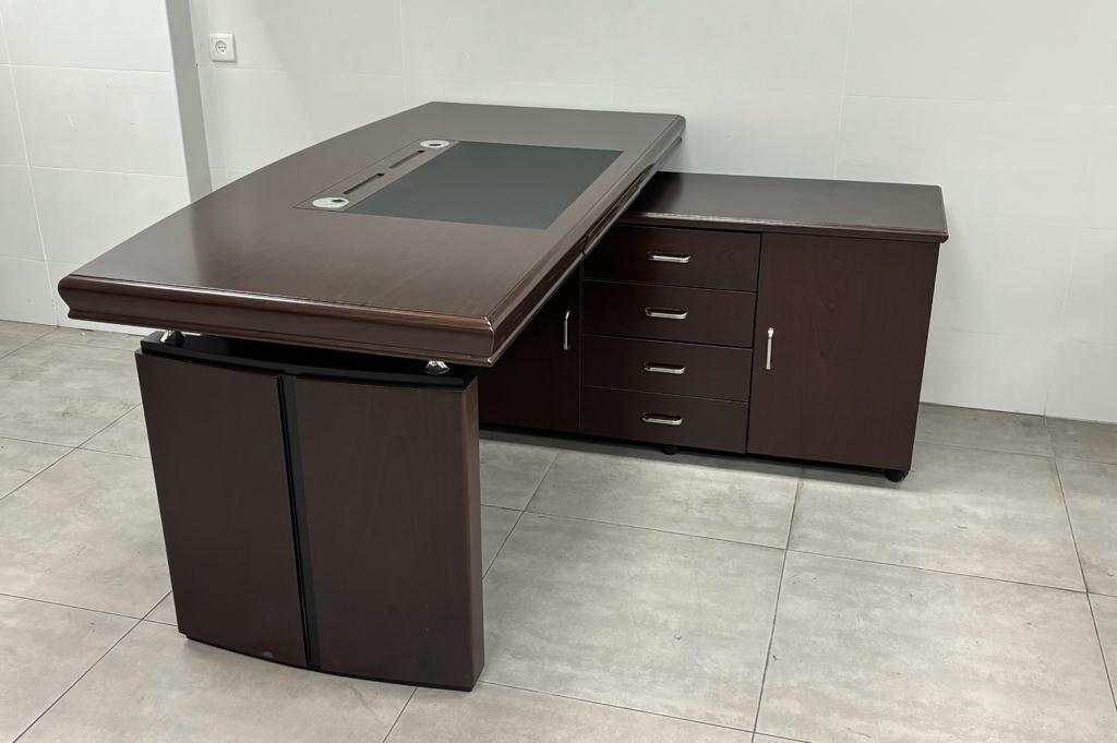 מערכת מנהלים מודרנית עשויה MDF בציפוי דמוי פורניר בעיצוב עץ אלגנטי ויוקרתי כולל תקשורת. מערכת מנהלים ארגונומית מעוצבת בעלת מראה עץ יוקרתי למשרד. מתאימה למנהלים, מזכירות וסטודנטים. המערכת כוללת שולחן מנהל, שלוחה רותמת . מידות: 160*90 ס"מ, צבע וונגה
