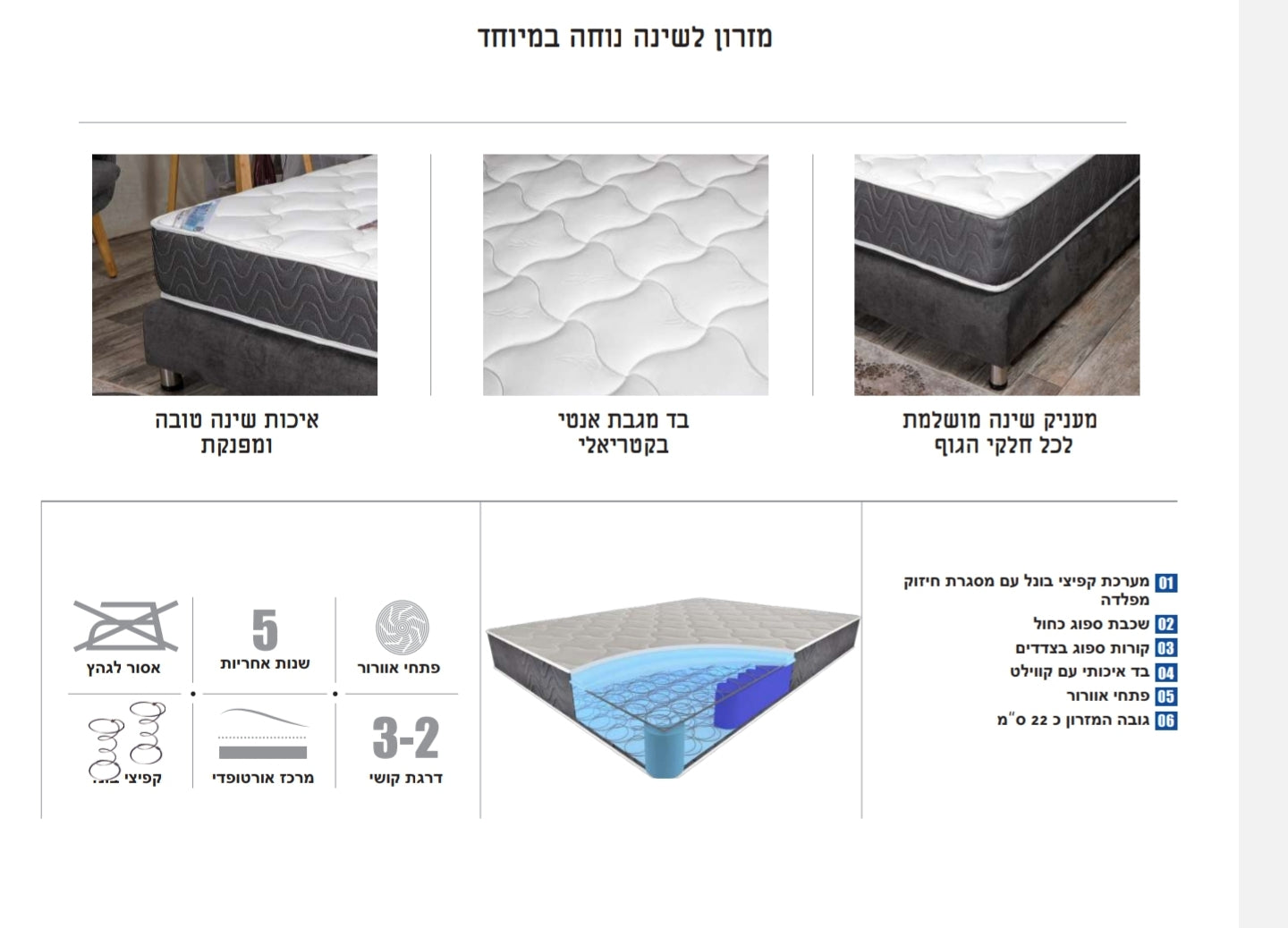 190*120 במחיר 890, 190*140 במחיר 1038, 190*150 במחיר 1112, 190*160 במחיר 1186, 200*70 במחיר 546, 200*80 במחיר 624