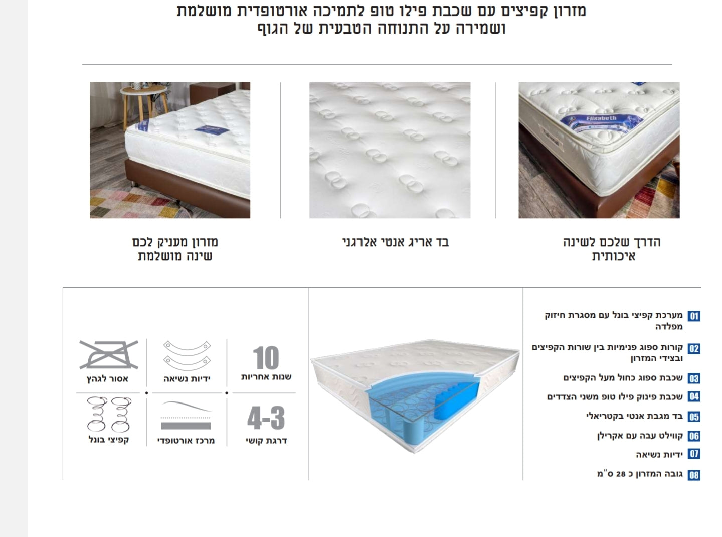 מזרון קפיצים עם שכבת פילו טופ לתמיכה אורטופדית מושלמת ושמירה על