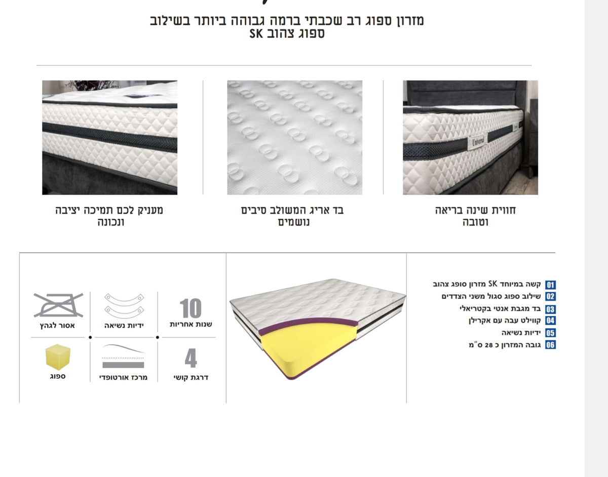 מזרון ספוג רב שכבתי ברמה גבוהה ביותר בשלוב ספוג צהוב Sk