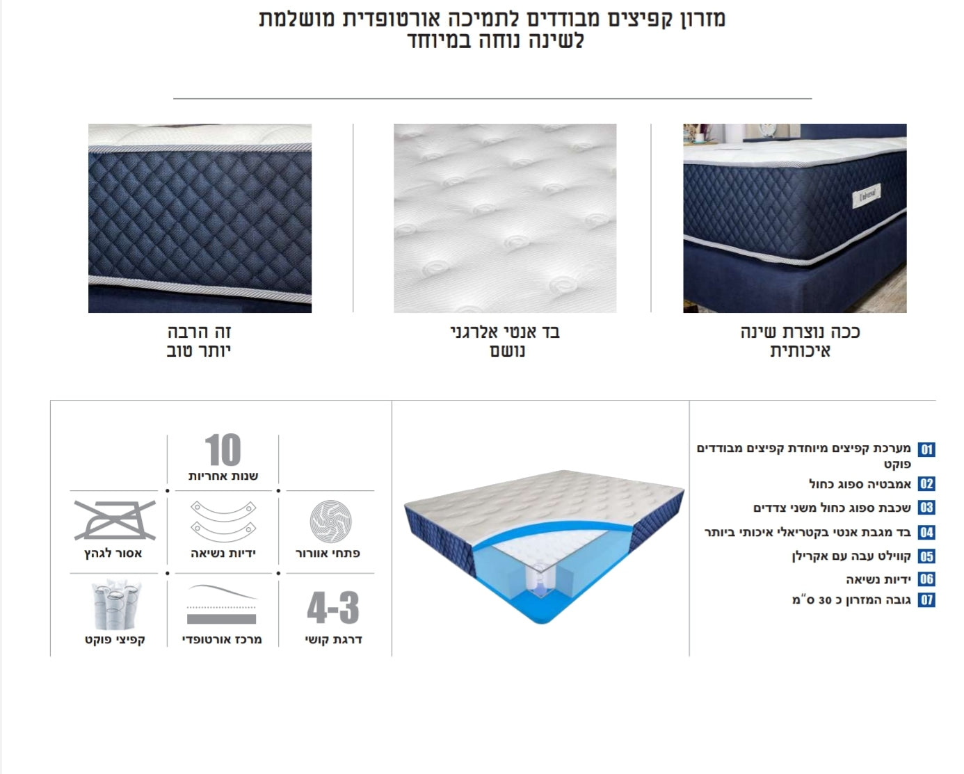 מזרון קפיצים מבודדים לתמיכה אורטופדית מושלמת לשינה נוחה במיוחד .
