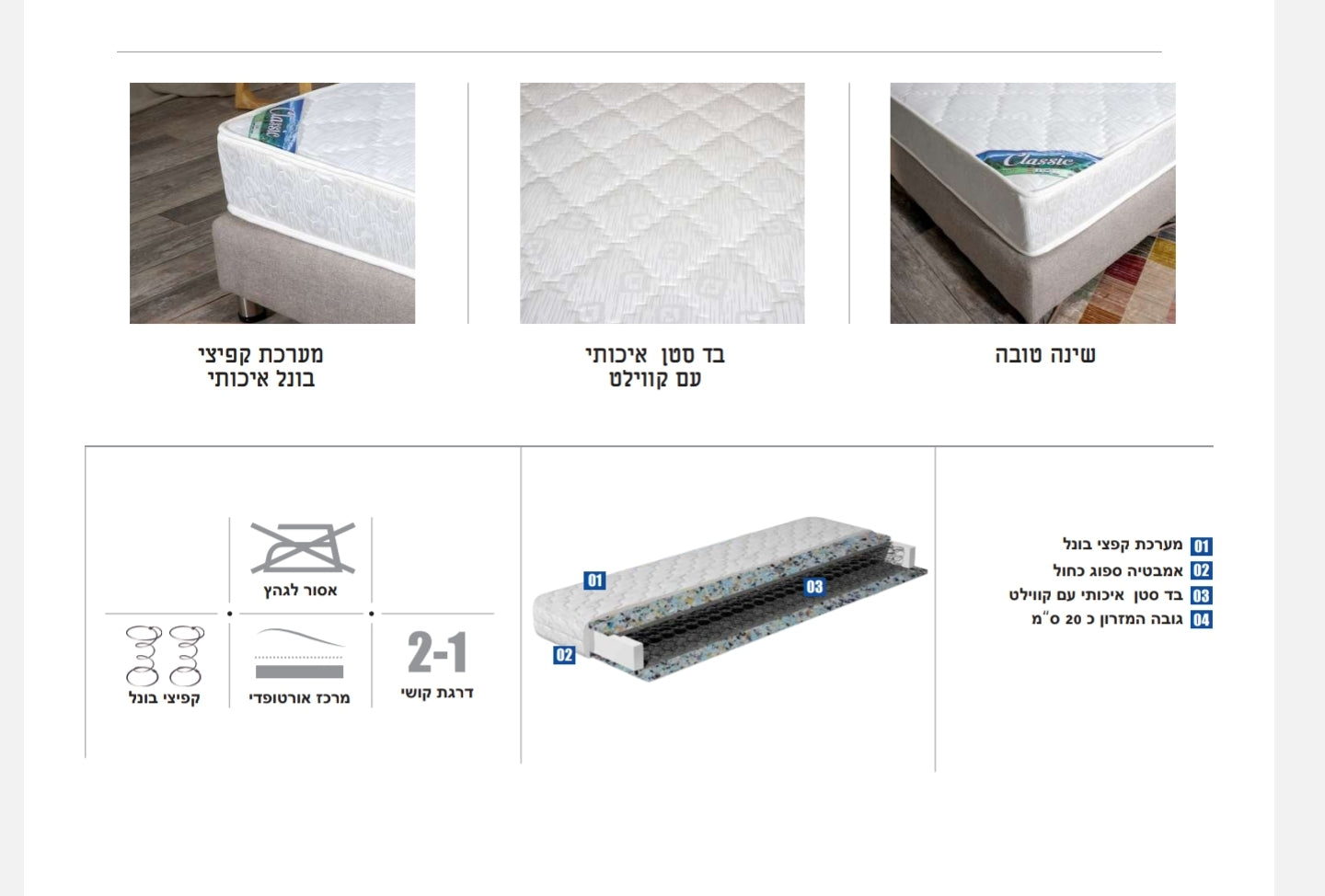 !מזרון בד סטן איכותי עם קווילט, מערכת קפיצי בונל איכותי שינה טובה