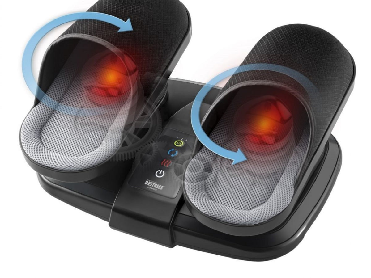 מכשיר עיסוי לכפות הרגליים, המעניק מסאז' מקצועי ועמוק לכף הרגל. התנועות המעגליות שמשחררות את הקרסול תוך עיסוי שיאצו מפנק, משחרר ומרפה. עיסוי דחיסת אוויר שמסייע בזרימת הדם ומפיג לחצים ומתחים ואופציית החימום יעניקו לכם את הפינוק המושלם בבית שלכם.