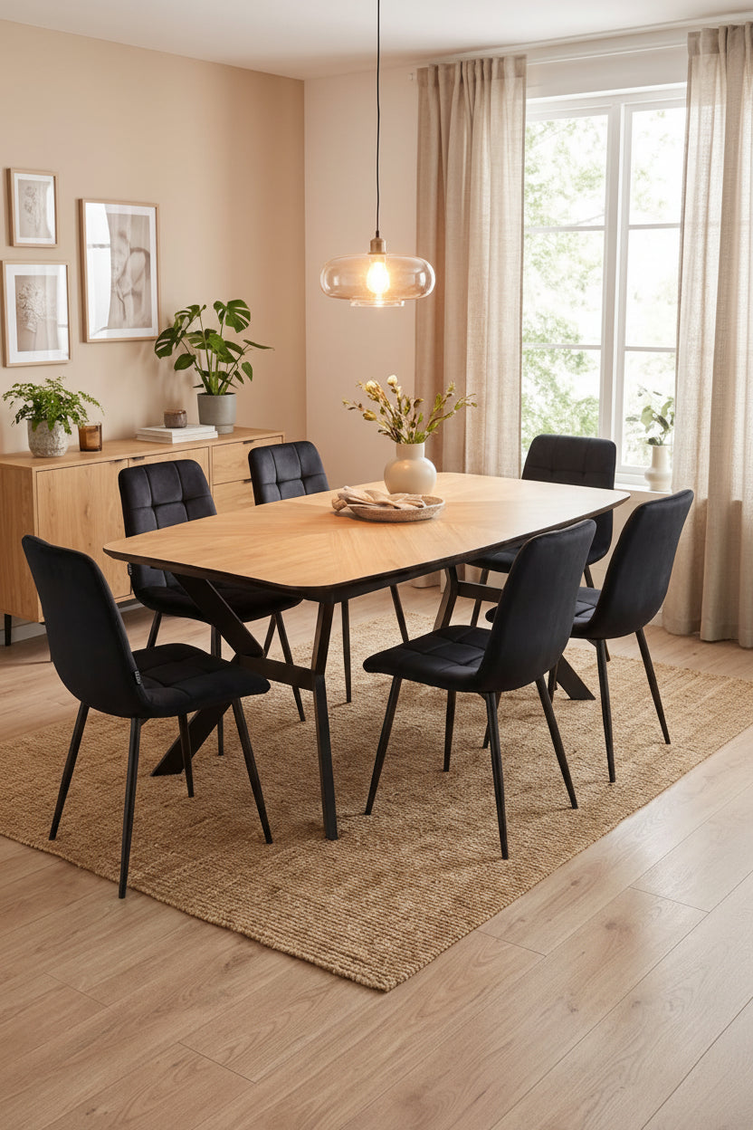 שולחן אוכל בעיצוב עכשווי, שמשלב בין אלגנטיות מרשימה לפרקטיות מפתיעה – פתרון אידיאלי למשפחות שאוהבות לארח.