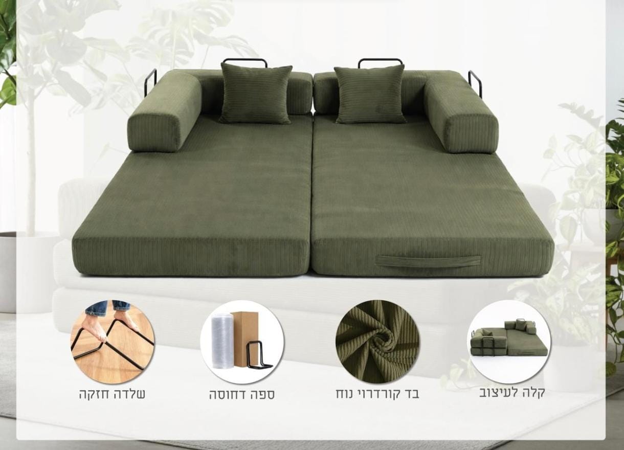 ספה חכמה שהופכת למיטה זוגית גדולה ומפנקת