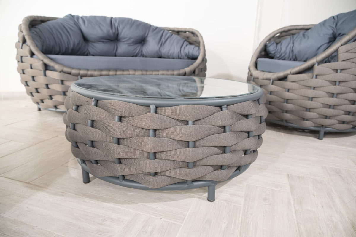 סט ישיבה מפנק לגן. סט מעוצב ברמה גבוהה תוצרת אירופה ייבוא אישי,מגיע בגוונים אפור וקרם