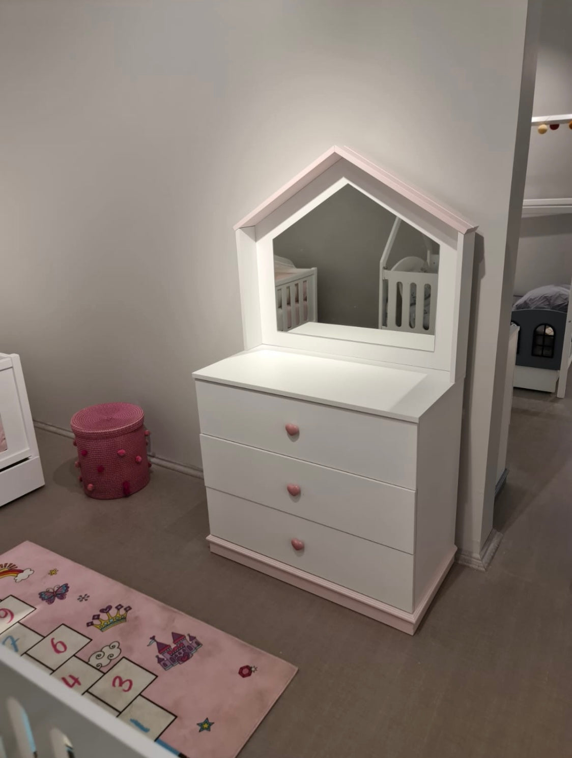 הכולל מיטה+מזרון ומיטת תינוק + מזרון ושידה עם 3 מגירות +מראה