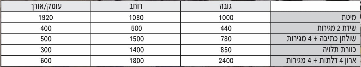 ניתן לרכוש כל דבר בנפרד (מיטה, ארון, ספריה )