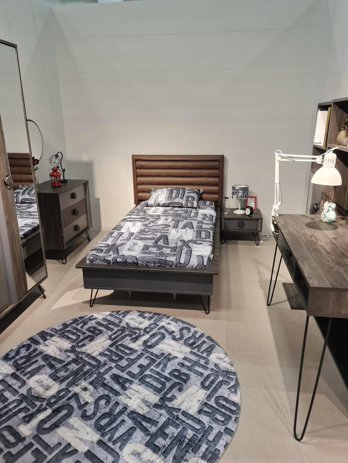 הכולל מיטה ,מזרון,שטיח,ספרייה הכוללת שולחן כתיבה,ארון קיר עם מראה ושידה ו3 מגירות