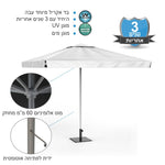 8 צלעות אלומיניום , בד אקרילי 260 גרם איכותי עם אחריות לשלוש שנים בציפוי שכבת הגנה PU מגן מים.