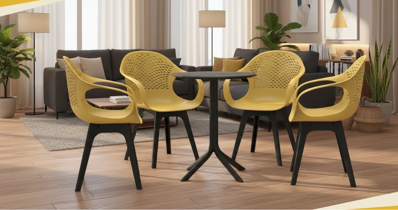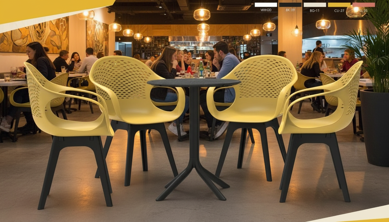 לכיסאות מגוון רב של צבעים: לבן\טורקיז\צהוב\שחור\תכלת\כתום\סגול\לבן.