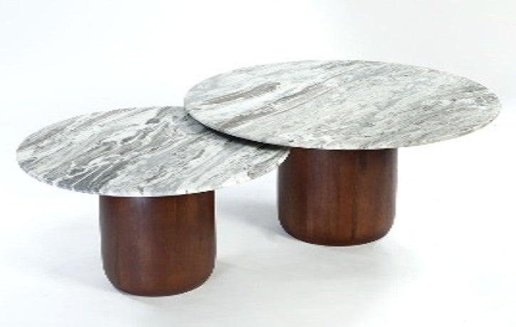 זוג שולחנות מעוצבים לסלון מעץ מנגו איכותי