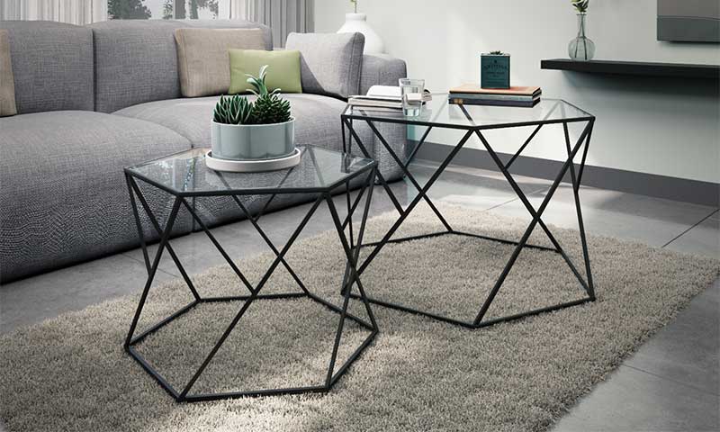 זוג שולחנות בצבע שחור משולב זכוכית שקופה