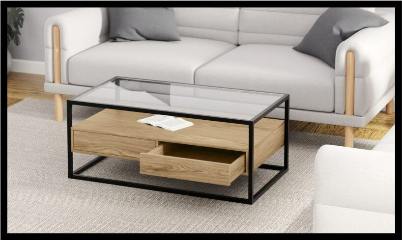 פלטת זכוכית עליונה ורגלי מתכת מושחרות להשלמת המראה המודרני
